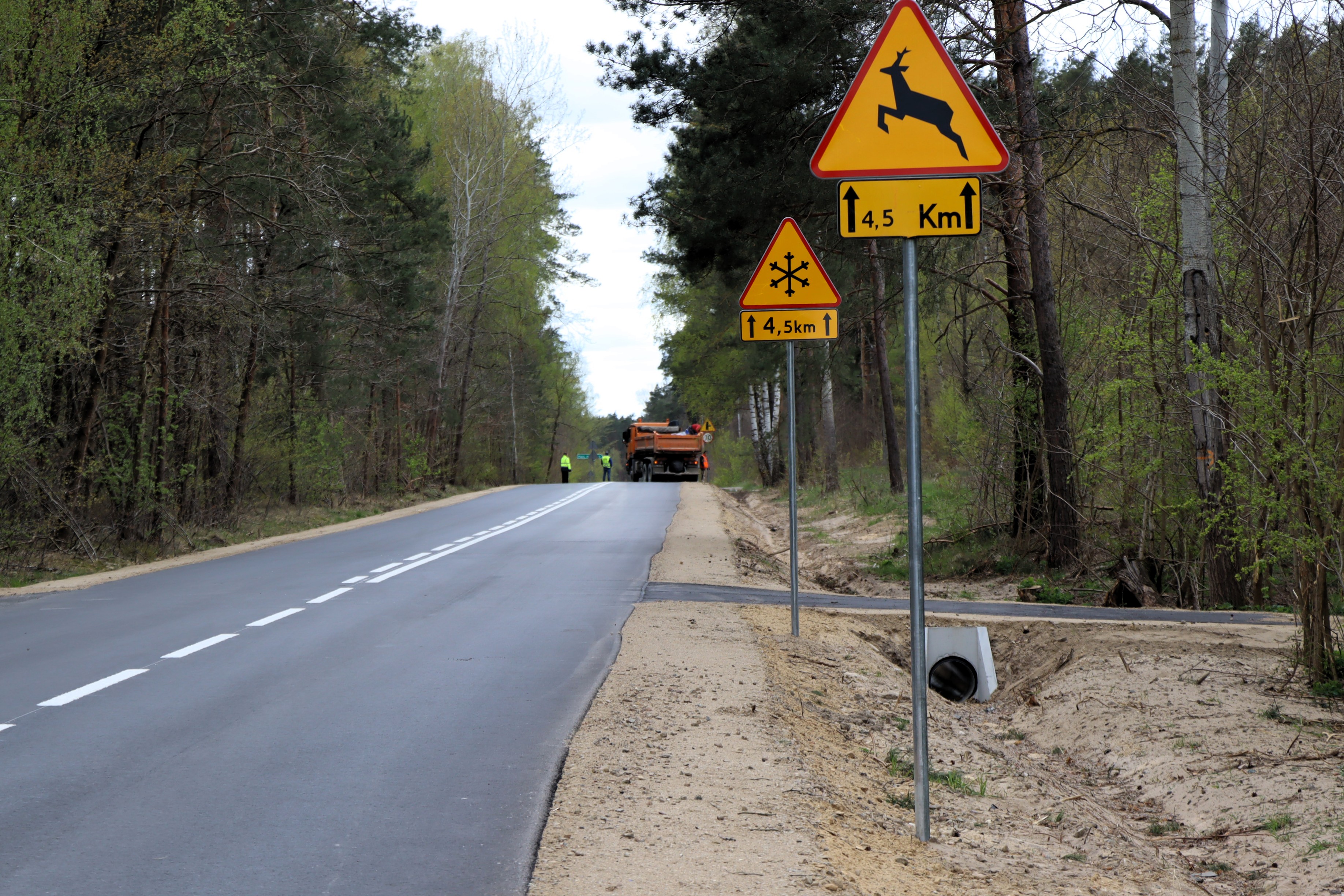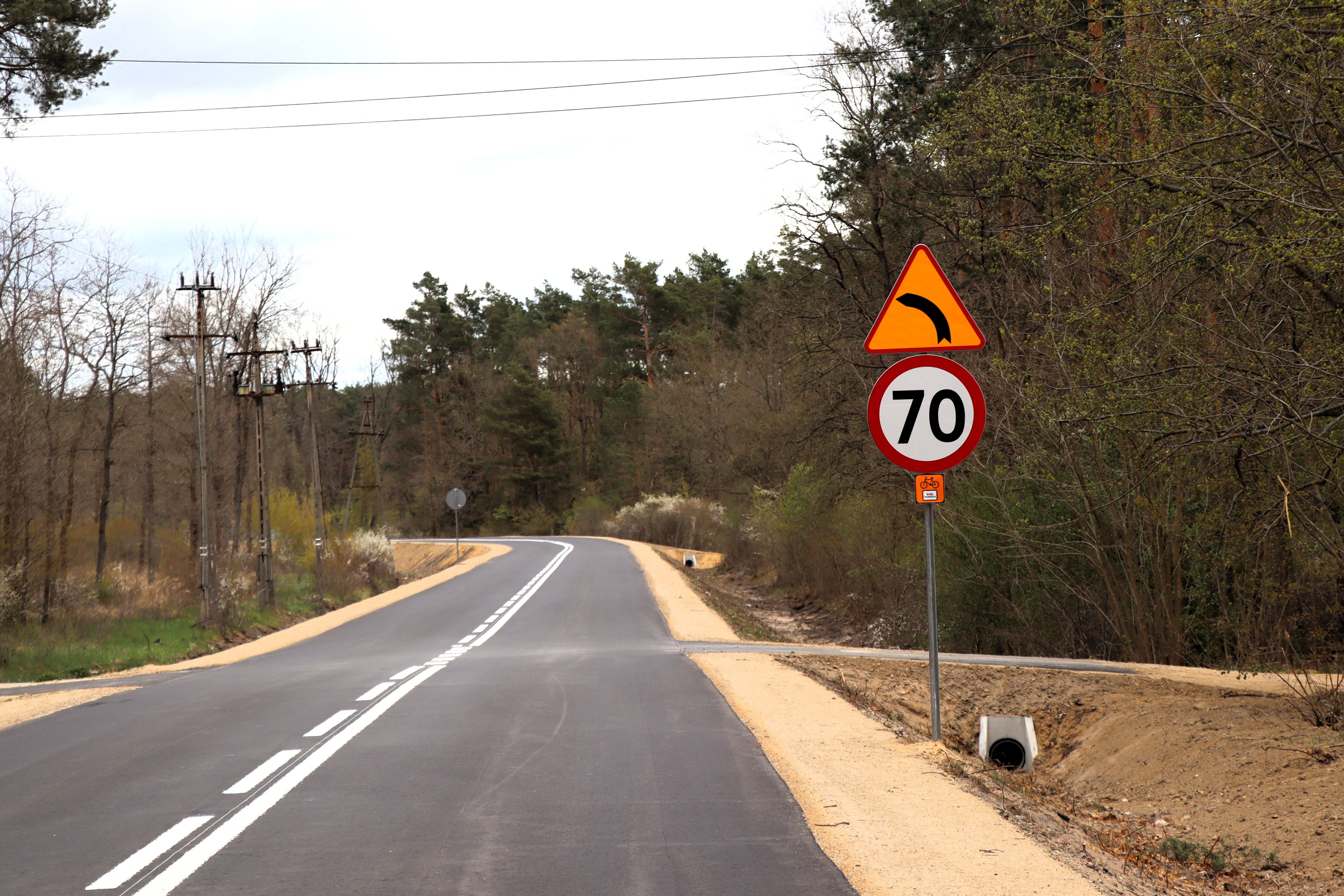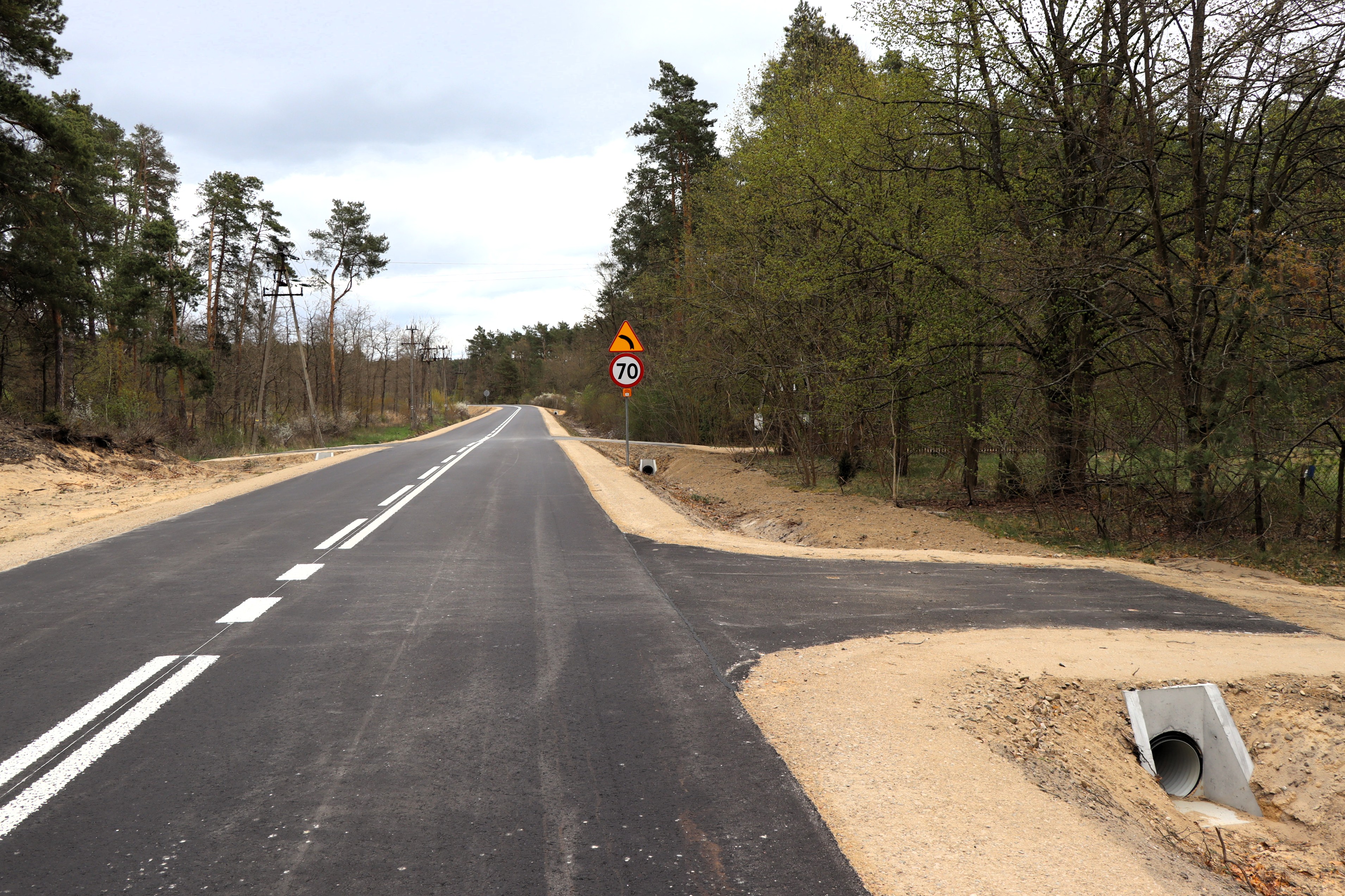 Inwestycja miała charakter kompleksowy – od podstawowej konstrukcji, aż po elementy poprawiające bezpieczeństwo. Wykonano nowe korytowanie, solidną podbudowę oraz położono świeżą nawierzchnię asfaltową. Pojawiło się nowe oznakowanie pionowe oraz poziome, które znacząco poprawi komfort jazdy po zmroku. Przebudowa objęła nowoczesne odwodnienie oraz remont przepustu skrzynkowego.